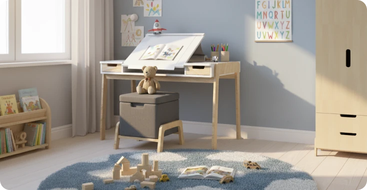 Odkryj meble z naszych kolekcji. Funkcjonalne i trwałe, tworzą przestrzeń, która rośnie razem z dzieckiem i wspiera jego rozwój.