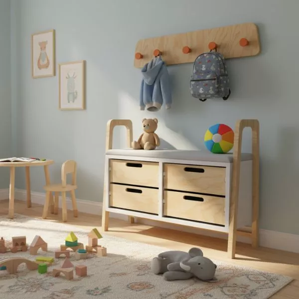 Funkcjonalne uchwyty do wieszania ubrań, plecaków czy zabawek. Pomagają utrzymać porządek i uczą dziecko organizacji własnej przestrzeni.