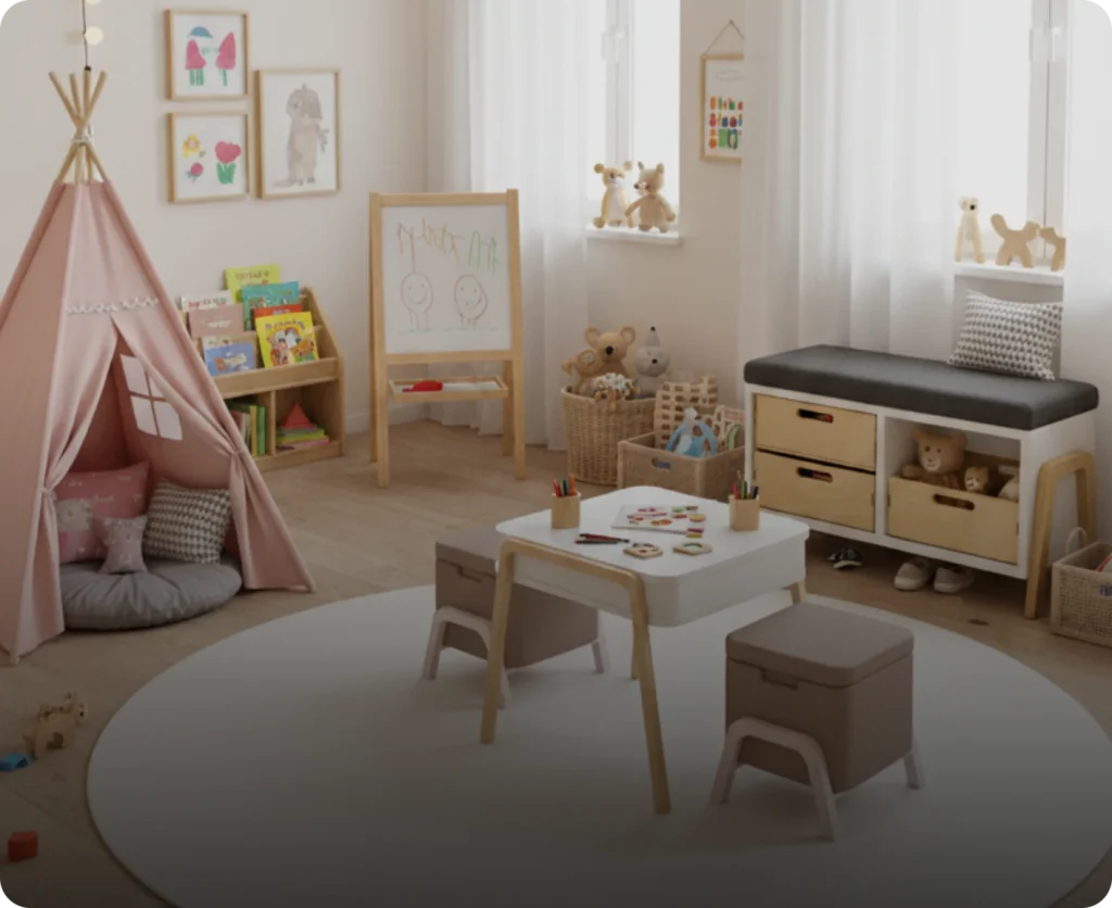 Przestrzeń wspierająca odkrywanie i rozwój dzieci. W kolekcji znajdują się: