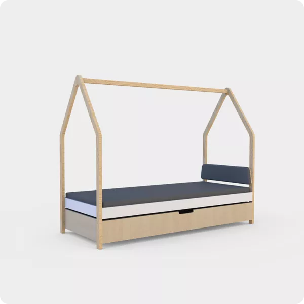 Łóżko w formie drewnianego domku, które pobudza wyobraźnię i daje poczucie bezpieczeństwa. Idealne miejsce do odpoczynku, zabawy i snucia dziecięcych marzeń.
